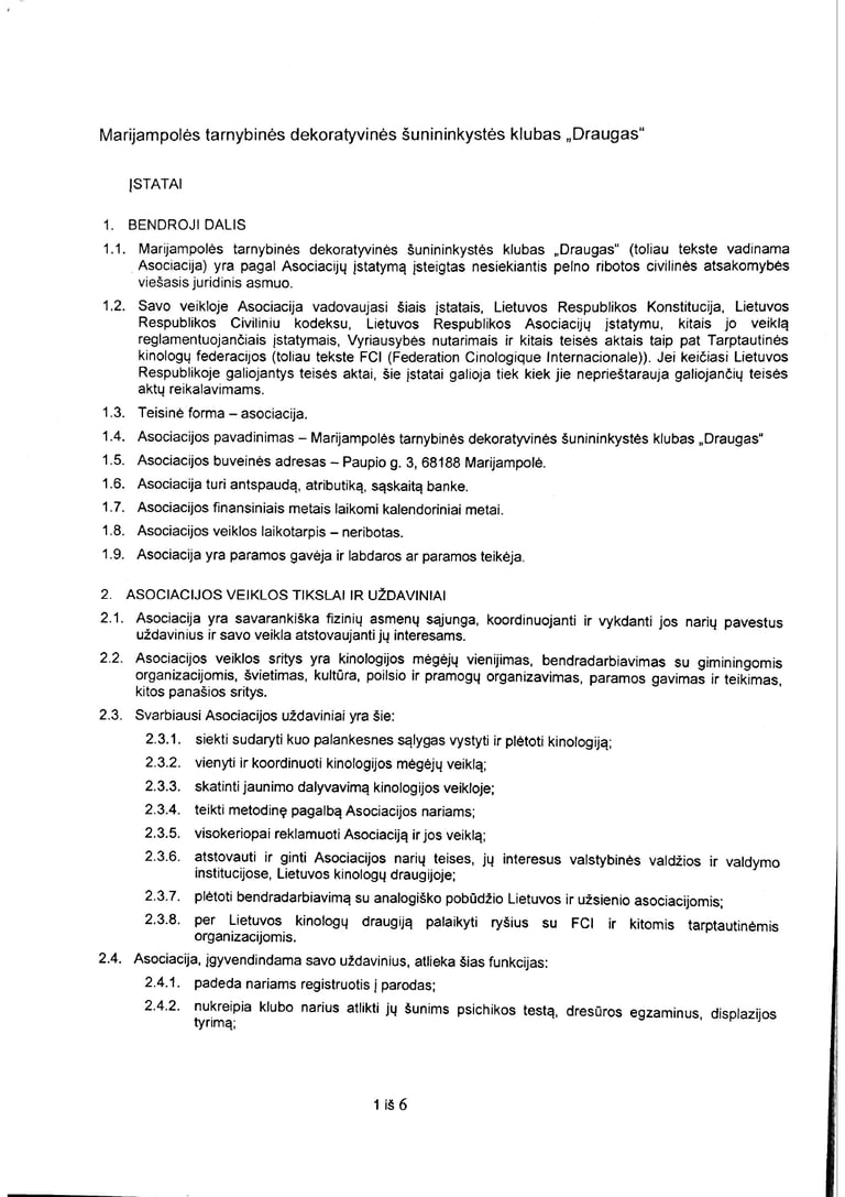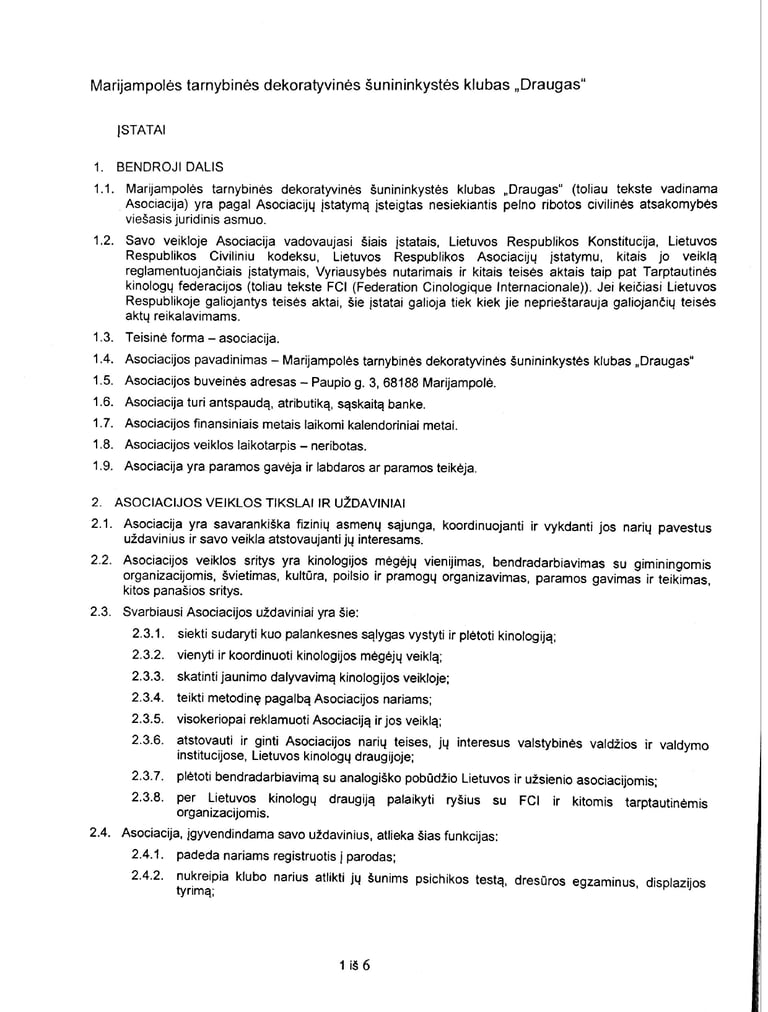 Klubo nuostatai (atkreipiame dėmesį, kad stojimo kaina ir pan. įstatų dalys gali būti keičiamos klubo susirinkimo metu)